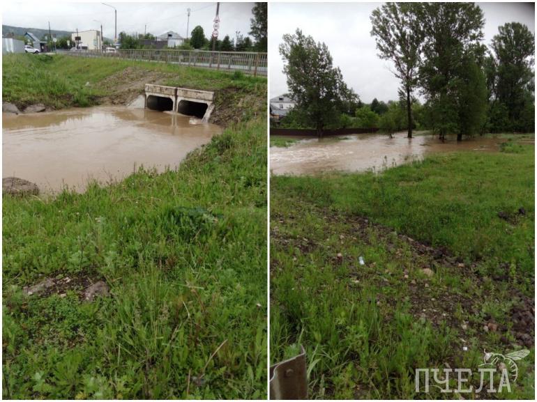 В Аше из-за дождей река вышла из берегов и затопила дома с огородами