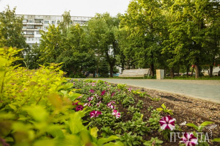 Клумбы с многолетниками и скамейки вместо луж и грязи