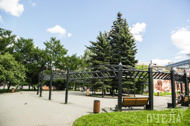 Небольшой и приятный сквер появился в Челябинске на пересечении улиц Елькина и Тимирязева. Здесь установили много лавочек и качели на перголе, сделали тропинки и освещение, поставили урны.