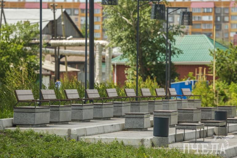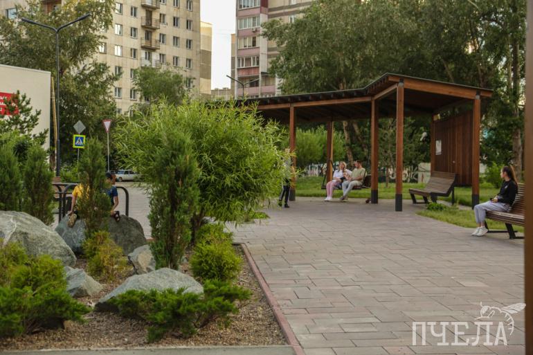 Благоустройство коснулось и так называемых проходных пространств. Так, в центре Челябинска за забором горсада имени Пушкина возле Театра драмы появился прогулочный путь с дорожками из террасной доски, качелями, скамейками и клумбами с многолетними растениями. Раньше тут стоял непонятный забор, и горожанам, живущим неподалёку, приходилось пересекать парк, чтобы пройти путь из дома до работы и обратно.