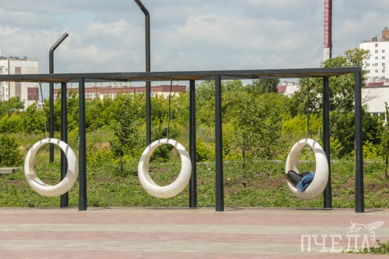 Теперь здесь — полноценный парк площадью в шесть гектаров с тропинками, лавочками, качелями и деревьями-крупномерами, которые высаживали в несколько этапов. Стоимость работ — более 37 млн рублей. В этом году здесь посадили более 260 новых деревьев, как хвойных, так и лиственных. Акции по озеленению проводили общественники и спортсмены.