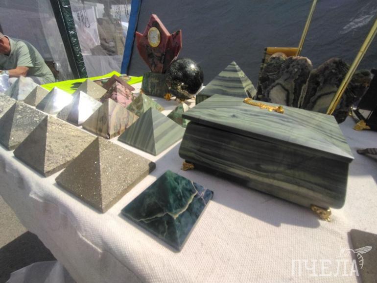 На фестивале в ходу у мастеров не только металл, но и дерево. Мастер-классы резьбы по дереву работают оба фестивальных дня — 16 и 17 июля с 10:00 до 20:00. И куда же без уральского камня?