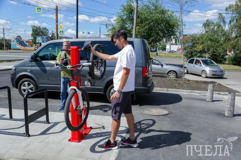 На перекрёстке Комсомольского проспекта и улицы Ворошилова установили станцию для ремонта велосипедов. Здесь же можно подкачать колёса. Велосипедный пит-стоп спроектировали местные жители, опираясь на опыт других регионов и стран. Пока такая точка в городе одна.