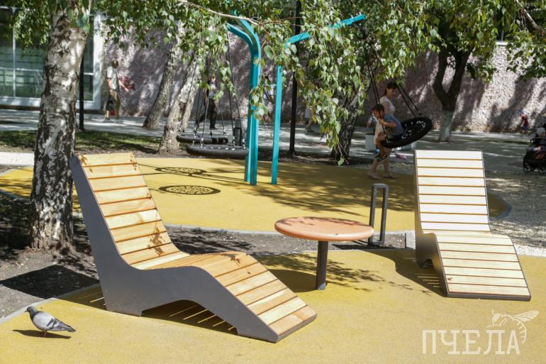 — Все пожелания жителей мы постарались учесть. Ни одно зелёное насаждение не пострадало. Дополнительно высадили около 500 кустарников и 21 дерево: 19 лип и две яблони, — отметил глава Курчатовского района Сергей Антипов. — Работы начались ещё 15 апреля, сейчас уже принимаем объект.