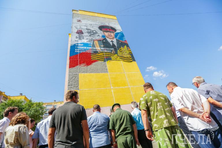 Портреты погибших появились на двух жилых домах. Они посвящены уроженцам Челябинской области. Оба — военный лётчик Александр Подшивалов и танкист Константин Глушков — погибли в первый же день спецоперации на Украине. Их память сегодня, 11 августа, почтили военнослужащие челябинского гарнизона, добровольцы-поисковики, волонтёры, ветераны и, конечно, родные и близкие.