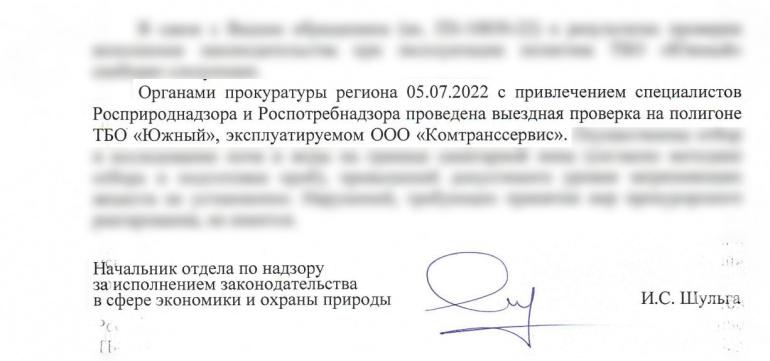 В областной прокуратуре «Пчеле» факт проведённых проверок подтвердили. В ведомстве сообщили, что: «провели отбор и исследование образцов почвы и воды на границе санитарной зоны; нарушений, требующих прокурорского реагирования, не обнаружили».