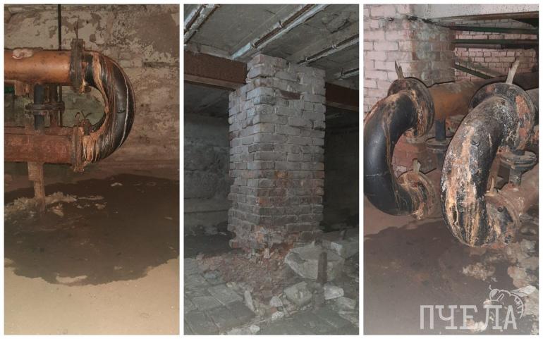 В подвале дела обстоят ещё хуже — трубы текут, вода размывает несущие конструкции