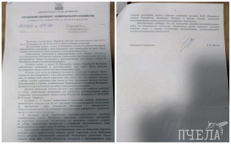 Вот такой ответ пришел жильцам дома от УЖКХ Челябинска