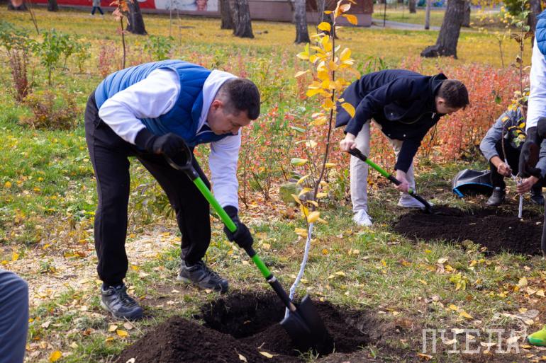 Участники высадили аллею плодовых деревьев сорта «Яблоня сибирская». Они отличаются хорошей устойчивостью к морозам и обилием мелких алых плодов.