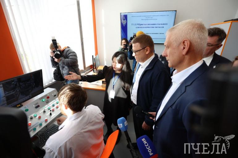 Первым пунктом программы стал визит в Магнитогорский многопрофильный колледж МГТУ имени Г. И. Носова. С 1 сентября 2022 года там запустили образовательно-производственный центр, который занимается подготовкой кадров для высокотехнологичных производств в области металлургии и машиностроения. Площадка оснащена современными лабораториями с высокотехнологичным оборудованием. Есть и комплексы виртуальной реальности, позволяющие погрузиться в реальные производственные процессы предприятий отрасли.
