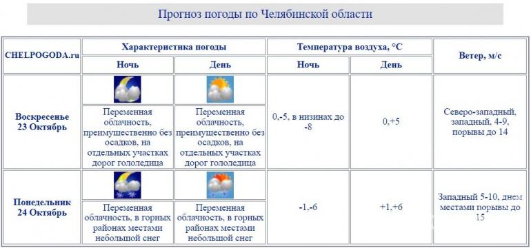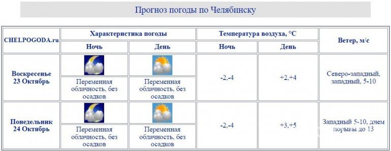 В воскресенье, 23 октября, в Челябинской области прогнозируется холодная погода без существенных осадков. По данным гидрометцентра, температура воздуха днём составит 0–5 градусов. Автолюбителям стоит быть готовыми к гололедице на некоторых участках дорог. Дискомфорта южноуральцам добавит ветер скоростью 4–9 м/с и порывами до 14 м/с. Ночью в некоторых районах похолодает до минус восьми градусов.