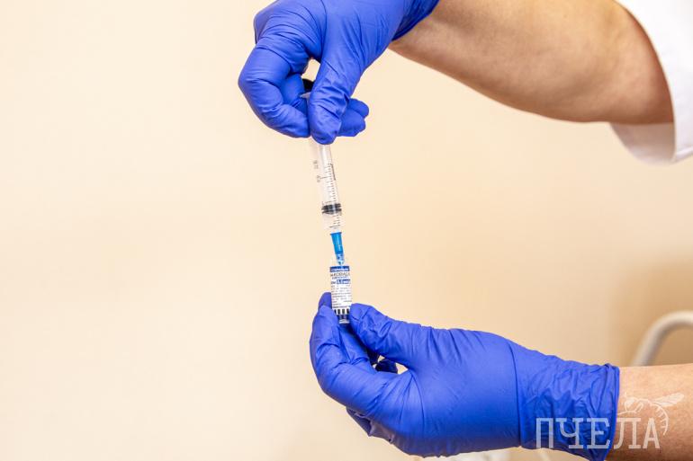 — Содержимое ампулы набирается в обычный шприц, затем игла меняется на специальную насадку-атомайзер. Далее препарат вводится пациенту в носовой ход на вдохе, закрыв другой пальцем. Мелкие капли орошают слизистую оболочку носа, избыток препарата стекает по задней стенке глотки, — рассказала заместитель главного врача ГКБ № 1 Татьяна Колчинская. — После вакцинации нельзя два часа пить, есть и курить, также стоит воздержаться от чихания и высмаркивания. В течение 30 минут вакцинированный пациент остаётся под наблюдением врача.