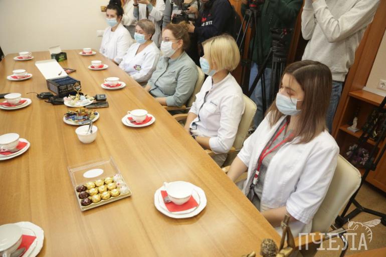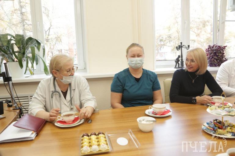 В преддверии поездки в гости к врачам приехала первый заместитель губернатора Ирина Гехт. За чашкой чая она обсудила со специалистами их будущую командировку.