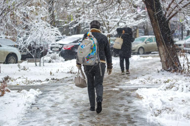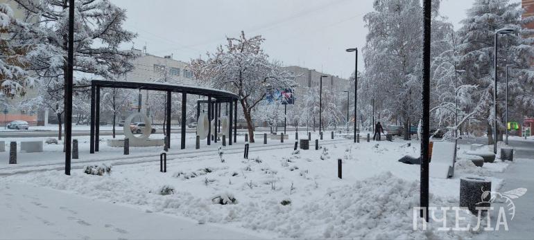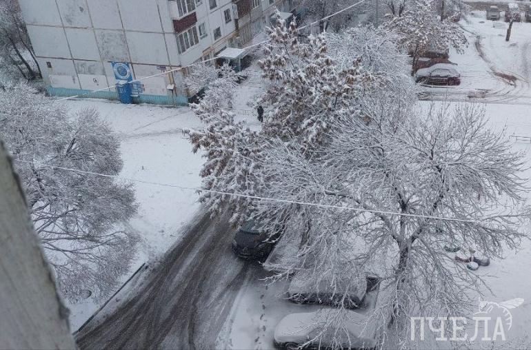 Челябинск припорошило густым осенним снегом