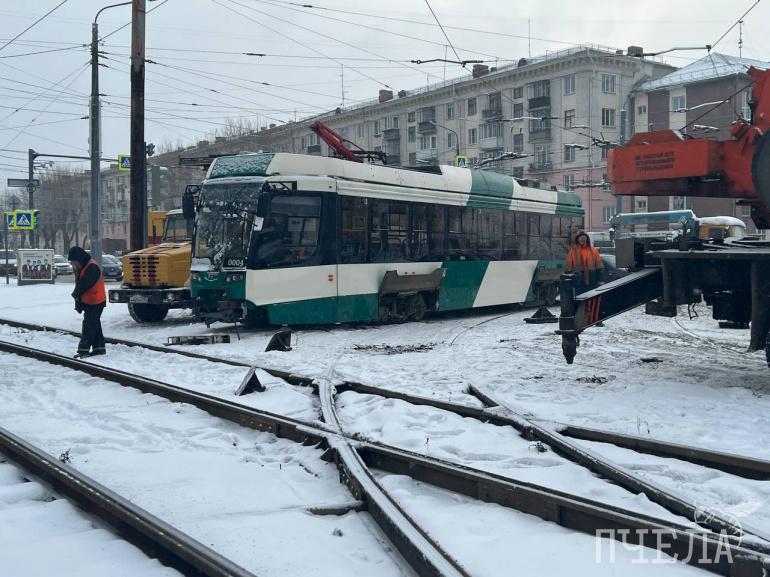 Сошедший с рельсов трамвай спровоцировал транспортный коллапс в Челябинске