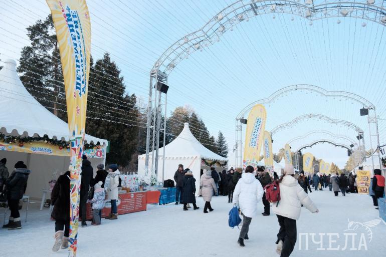 Именно на ярмарке первыми встречали гостей. Торговые ряды, расположенные с самого входа в парк, пестрели изобилием мяса, копчёностями, сырами, мёдом, изделиями ручной работы, уральскими сувенирами, сладостями и другими товарами. В общем, здесь можно было сполна закупиться к новогоднему столу.