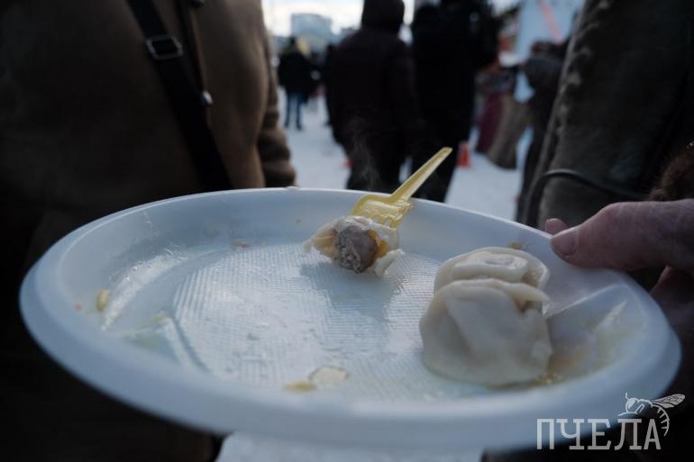 В этом году каждому гостю нашлось угощение по душе. Кроме пельменей здесь можно отведать домашние пироги, блины, различные копчёности, горячие блюда и сладости.