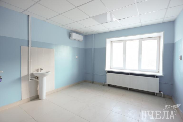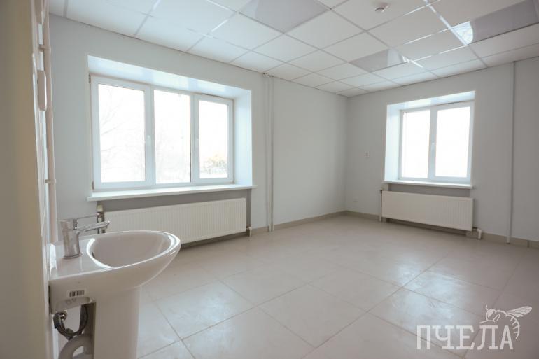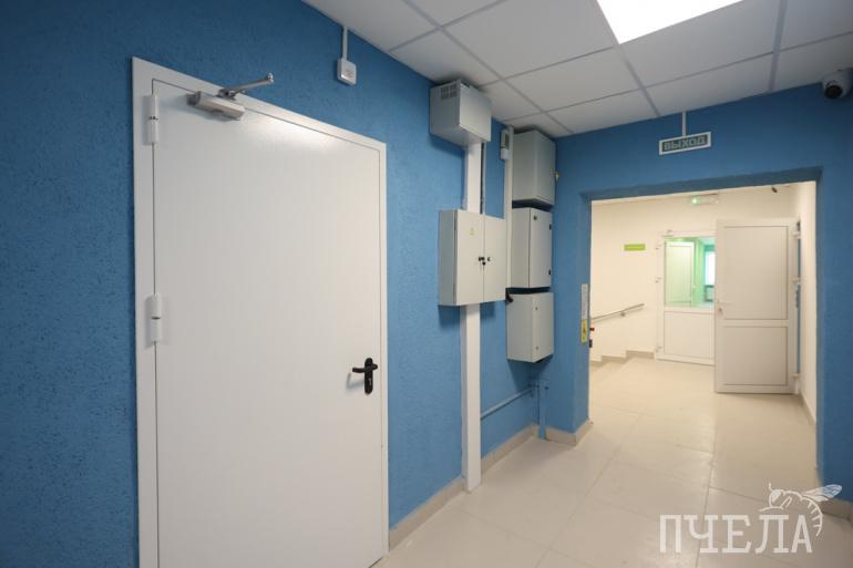 — На объекте в разные периоды работало до 20–25 человек, — рассказал Евгений Сараев. — Заменили, без преувеличения, всё. — Устроили входную группу — она была разбита, а теперь там всё выполнено в плитке, есть пандус и новые козырьки. Демонтировали все двери — входные и межкомнатные, во всех помещениях заменили полы, потолки, окна. Демонтировали 100% старой отделки стан. Ну и по сетям — полностью новые сети электроснабжения, освещения, пожарная сигнализация, разводка водоснабжения, канализация. Также заменили все отопительные приборы и подводку к ним. Раньше отопительная система была связана с жилыми квартирами, а теперь отведена напрямую в подвал. То есть, теперь отопительная система поликлиники работает независимо от жителей квартир на втором и третьем этажах.