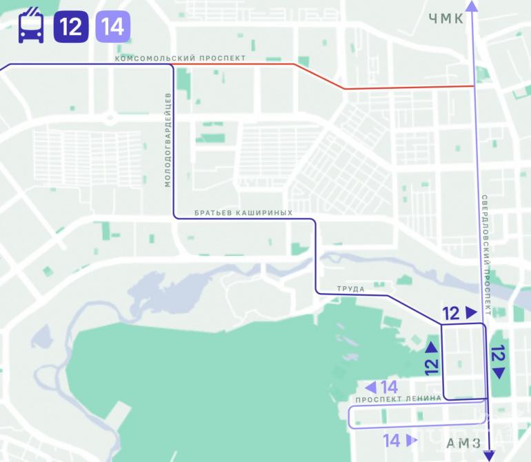В предстоящие выходные, 15 и 16 апреля, троллейбусы № 12 и № 14 будут ходить по другому маршруту. Об изменениях сообщили в управлении транспорта администрации Челябинска.