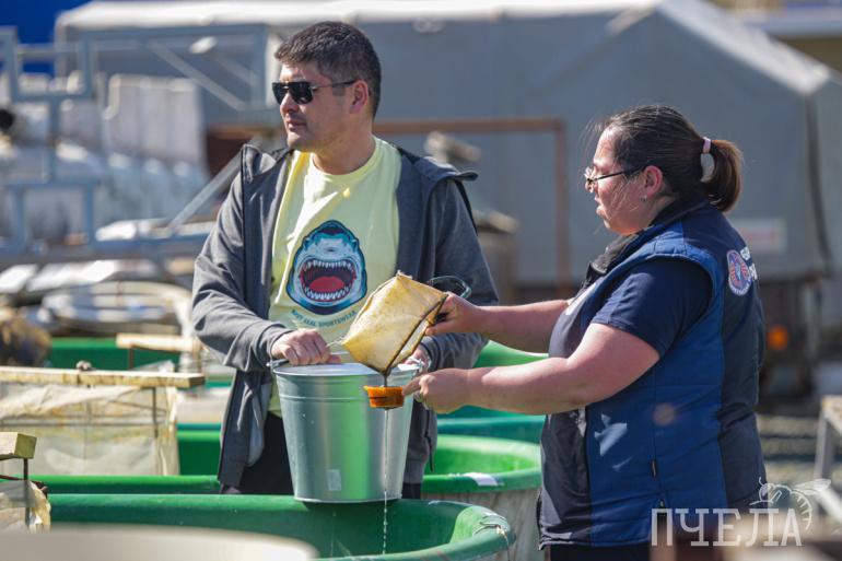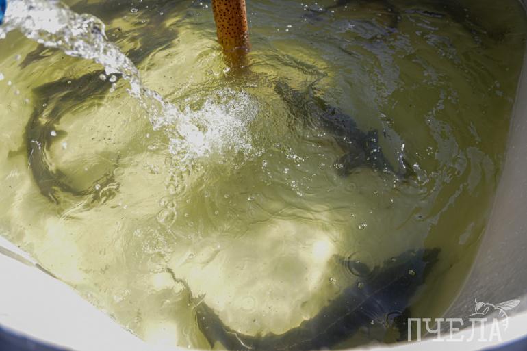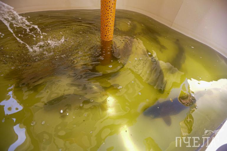 Подросших, жизнеспособных личинок пеляди вычерпывают из бассейна, делают контрольное взвешивание, а затем упаковывают в большие пакеты, накачанные кислородом, и отправляют на разные водоёмы для зарыбления.