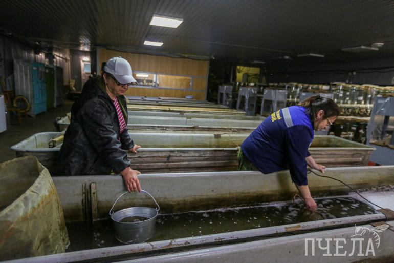 Мощность цехов позволяет ежегодно инкубировать до миллиарда икринок. Здесь выращивают стерлядь, сазана, карпа, карася, белого амура, судака, щуку, а также более холодолюбивых северных представителей — пелядь и муксуна. К слову, последнего представителя сиговых рыб — муксуна — отправляют прямиком в устье реки Обь и в сибирские озера, где они находятся на грани исчезновения из-за влияния промышленных предприятий. Сейчас в цеху готовится к выпуску 42 миллиона икринок пеляди и 13,5 миллионов икры муксуна. Их выращивают буквально в тепличных условиях — чтобы из икринки выросла полноценная личинка пеляди или муксуна, нужно ждать минимум 7–8 месяцев, кормить, поддерживать специальную температуру и следить за их развитием.
