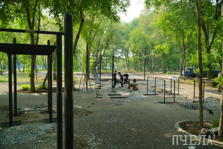 На первых двух этапах в нём вырезали аварийные деревья, сделали тропинки, освещение, установили игровую площадку