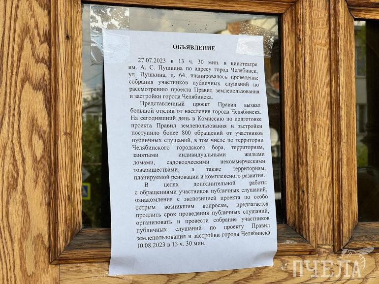 Такое объявление сегодня увидели на дверях кинотеатра имени Пушкина пришедшие на слушания челябинцы