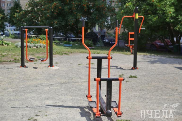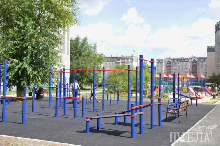 Теперь местных жителей будет радовать спортивный комплекс с силовыми тренажёрами и игровой комплекс с качелями и каруселью.