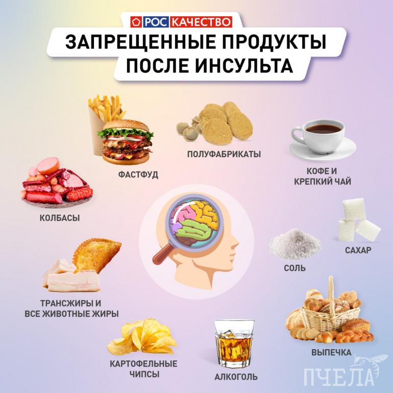 В карточках специалисты Роскачества перечислили продукты, которые необходимо исключить из рациона после перенесённого инсульта.