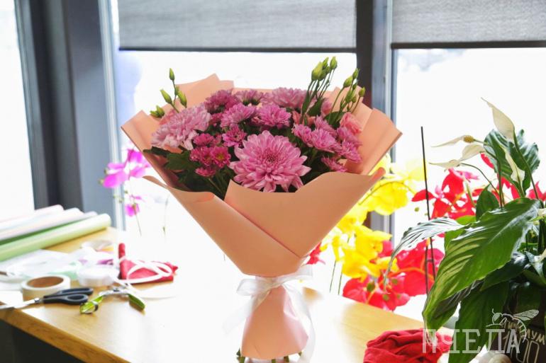 Букет из трёх хризантем обойдётся в 700, а из пяти — в 1100 рублей