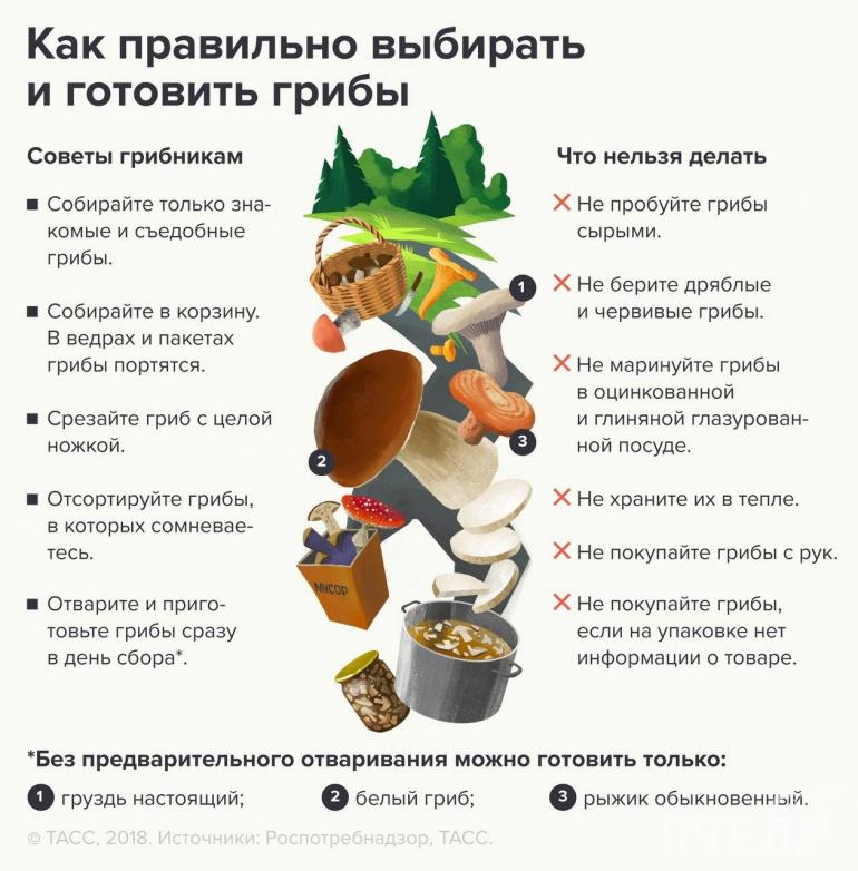 Эксперты посоветовали собирать грибы в корзину, потому что в вёдрах и пакетах они быстро портятся. И ни в коем случае не нужно пробовать грибы сырыми. А отварить их лучше сразу в день сбора.