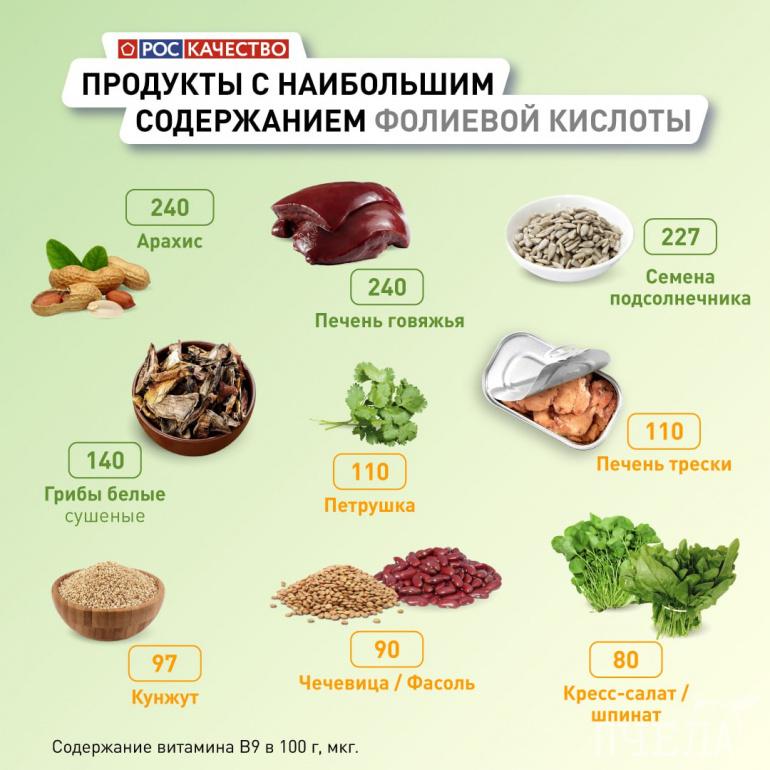 В Роскачестве назвали продукты, богатые фолиевой кислотой