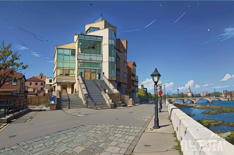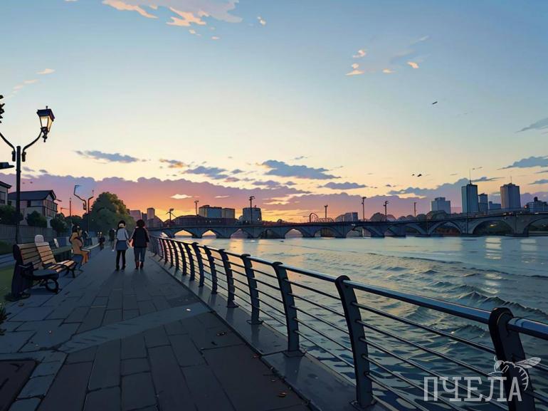 Мультяшный ламповый вид набережной вызывает тёплые чувства