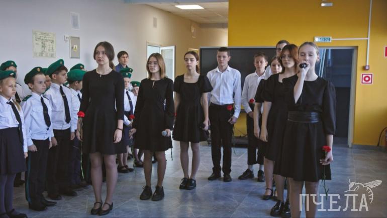 Ученики возложили красные гвоздики в память о герое, который, как и они, когда-то бегал по коридорам их школы