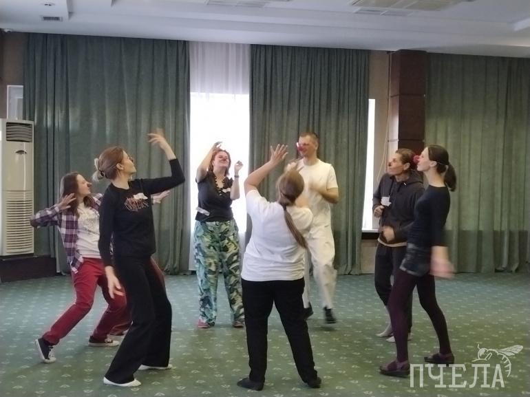 — Отличие тренингов именно по больничной клоунаде — то, что мы делаем здесь с ребятами, они должны использовать в больницах во время выстраивания игрового общения с пациентами, врачами и родственниками пациентов, — поделилась Лерика Лукина. — То есть это всё методы, которые помогают быть клоуну более свободным, раскрепощённым, спокойным.