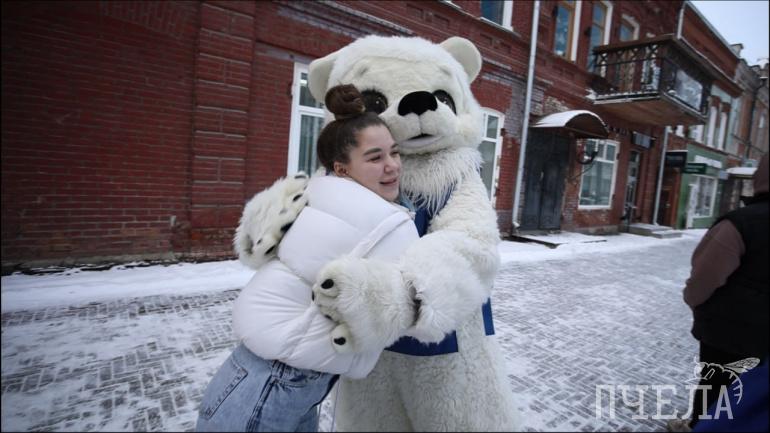 Кроме ответов на три вопроса важным условием было обнять белого мишку, что люди делали с большим удовольствием