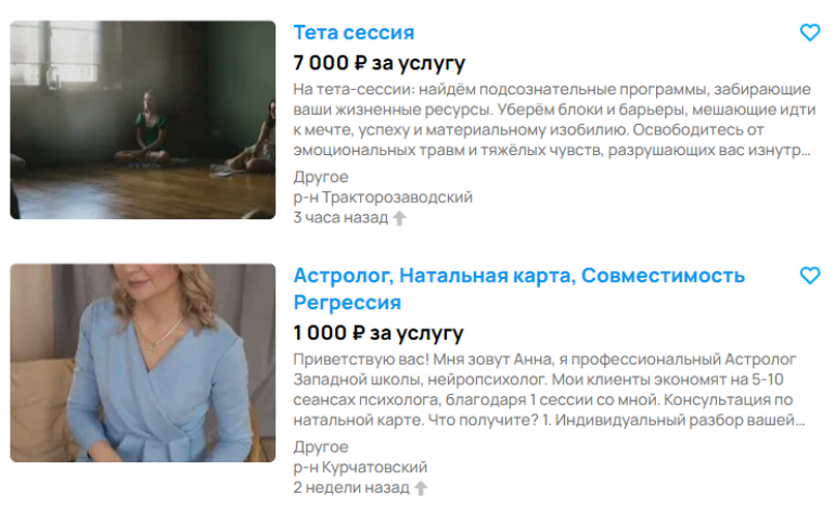 Оказывается, в Челябинской области плотная конкуренция среди астрологов, нумерологов и прочих магов всех мастей. Люди предлагают узнать свою судьбу, сделать приворот и отворот, привлечь «финансовую энергию» и убрать «подсoзнатeльные пpoграммы, забиpaющиe вaши жизнeнныe peсурсы». Судя по обилию предложений, есть и спрос. Никого не осуждаем, главное, не забывать про эффект плацебо. Услышав доброе предзнаменование, человек (сам, а не из-за какого-то мистического вмешательства) избавляется от надуманных проблем, смелее уходит с нелюбимой работы, разрывает отношения с неподходящим человеком.