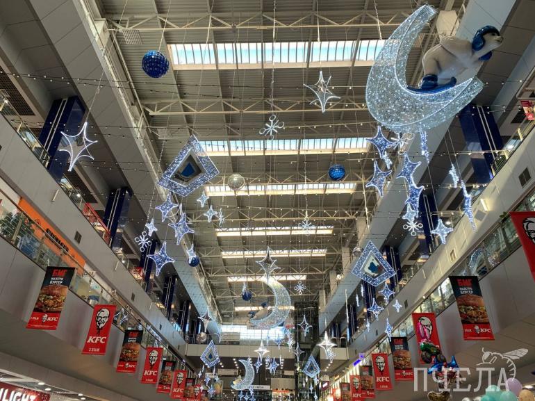 Яркие ленты и разноцветные шары: как украсили торговые центры к Новому году