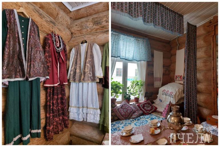 В двухэтажном домике найдёте предметы татарской одежды, посуды и мебели