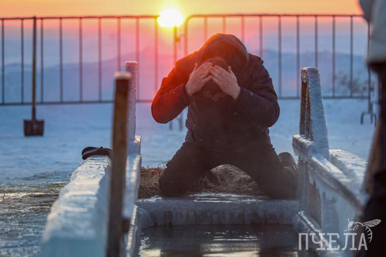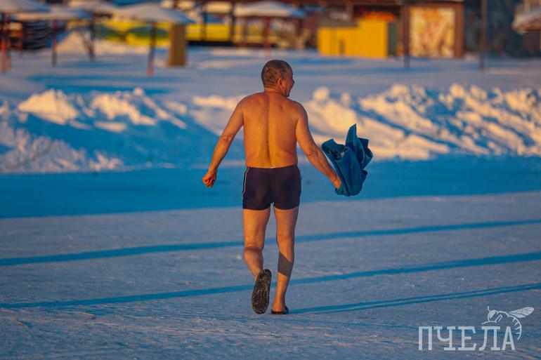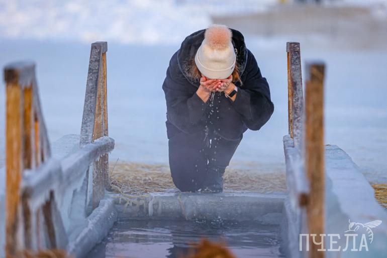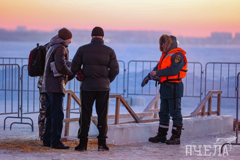 «Пчела» запечатлела Крещенские купания в Челябинске под яркими лучами рассветного солнца
