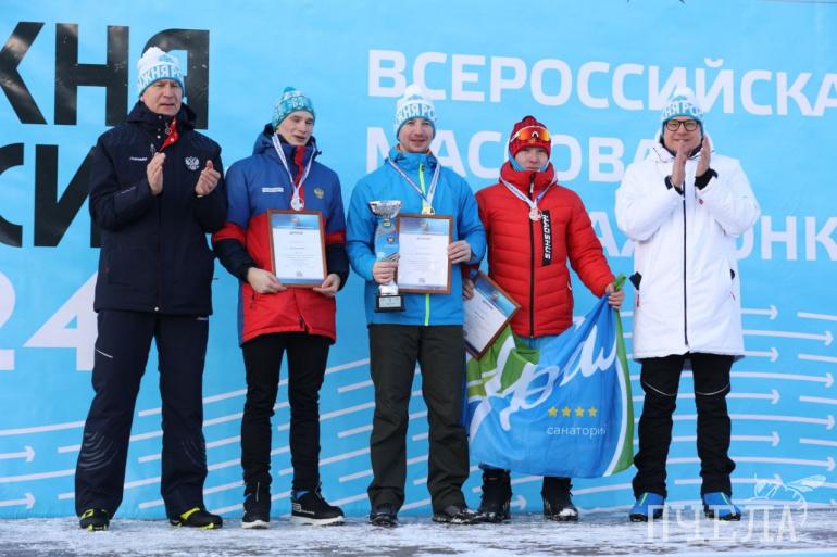Федеральный министр и губернатор наградили победителей забега на дистанции 10 километров, который состоялся накануне. Среди мужчин первое место занял Алексей Мельник (Челябинск), второе — Дмитрий Куксин (Челябинск, ЮУрГУ), третье — Артур Юсупов (Увельский район). Абсолютной победительницей среди женщин стала Наталья Несоленая (Челябинск, УралГУФК), второе место завоевала Анастасия Афанасьевв (Челябинск, ЮУрГУ), замкнула тройку лидеров Анна Гостяева (Челябинск, ЮУрГУ).