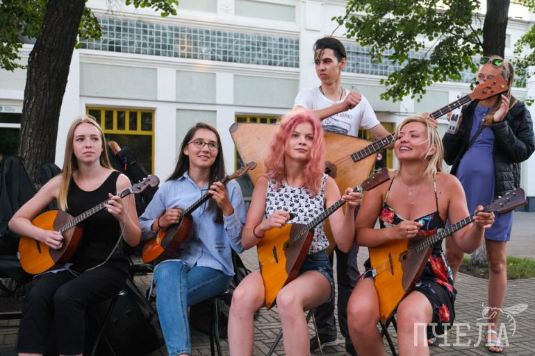 — Все они — ученики нашей школы искусств разных лет: кто-то ещё учится, кто-то уже закончил, другие уже работают, — рассказала «Пчеле» педагог детской школы искусств № 5 в Металлургическом районе города Галина Самохвалова. — Вот так на Кировке собираемся очень редко, просто по настроению. Приходят те, кто может. Рады всем.