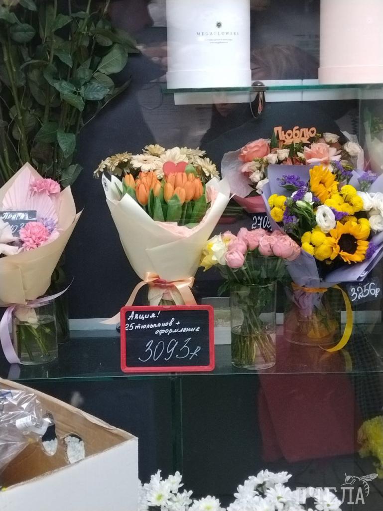 А вот в менее раскрученном цветочном магазине букетик из пяти тюльпанов обойдётся всего в 250 рублей.
