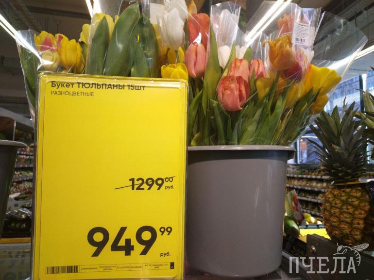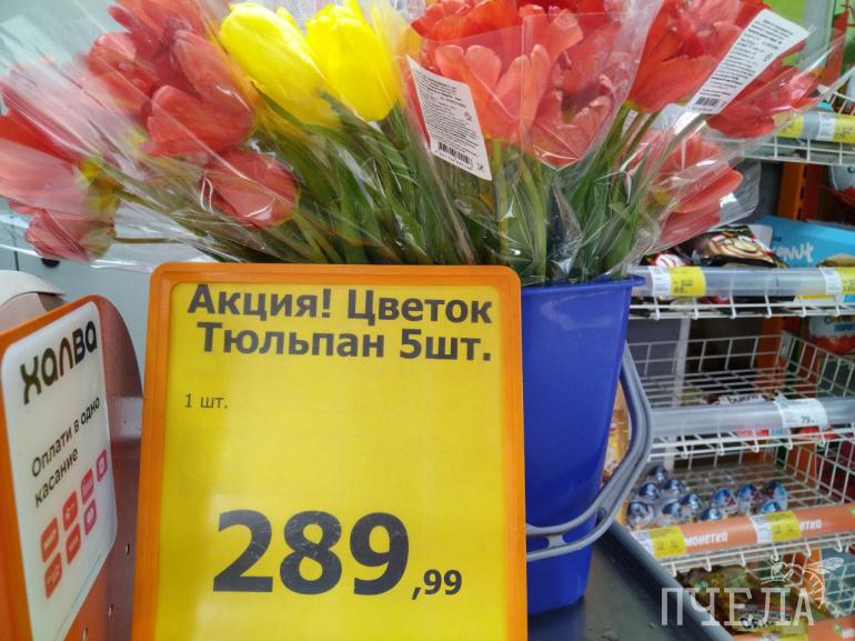 В больших же гипермаркетах сети пять тюльпанов обойдутся в 249,99 рублей