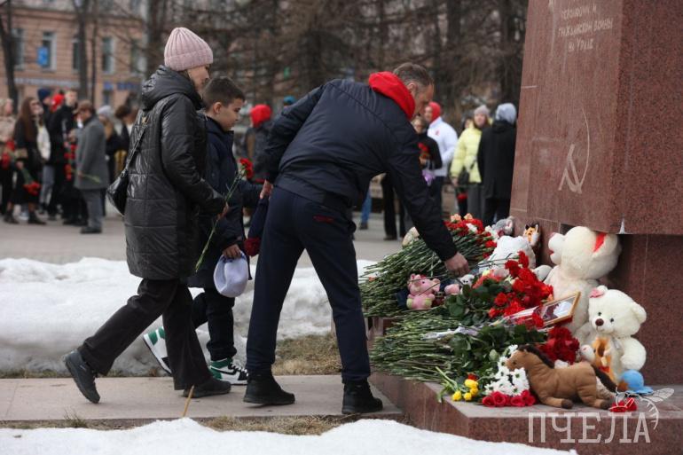 Жители Челябинска устроили стихийный мемориал около памятника «Орлёнок», куда продолжают возлагать цветы, свечи и игрушки в память о погибших во время теракта в «Крокус Сити Холл». Фотокорреспондент «Пчелы» побывал на Алом поле и запечатлел момент всеобщей скорби.
