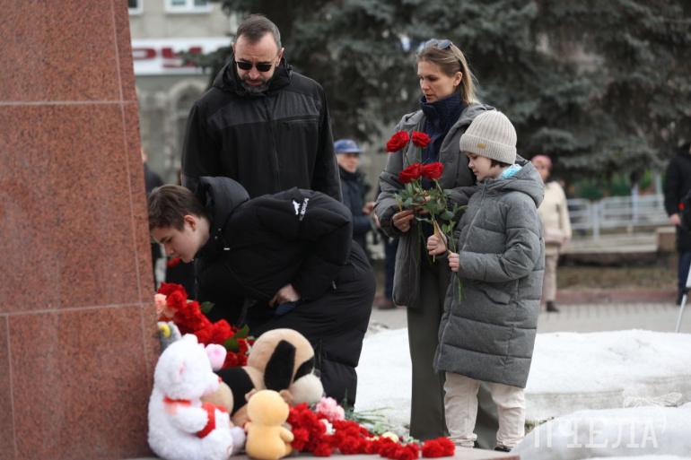Челябинцы возлагают цветы к мемориалу в память о жертвах теракта