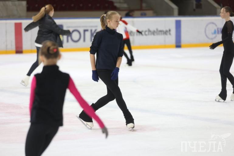Юные фигуристы отработали на звёздном мастер-классе навыки скольжения на льду и сложные элементы, в том числе прыжки