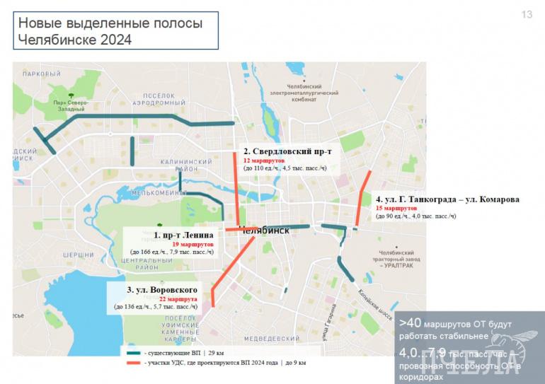 По плану мэрии, в Челябинске обустроят выделенные полосы ещё на пяти участках общей протяжённостью 7,5 километров: