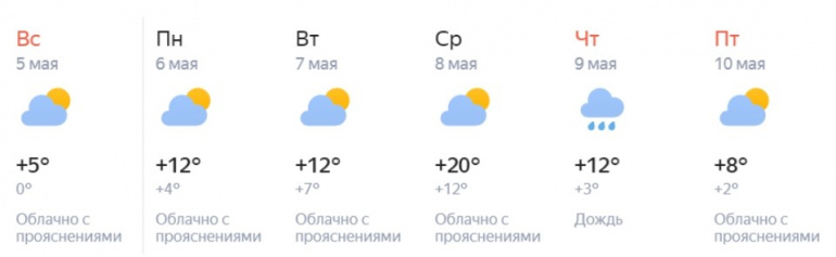 А в Челябинске сегодня, 5 мая, осадков не планируется. Днём столбики уличных термометров поднимутся до +7 градусов, а в понедельник — до +13. В этот день дожди не ожидаются, подует лишь сильный юго-западный ветер. А судя по данным долгосрочного прогноза, в среду, 7 мая, в городе потеплеет аж до +20 градусов.