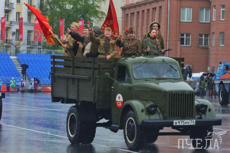 Тысячи южноуральев не побоялись ливня и пришли на Парад Победы в Челябинске